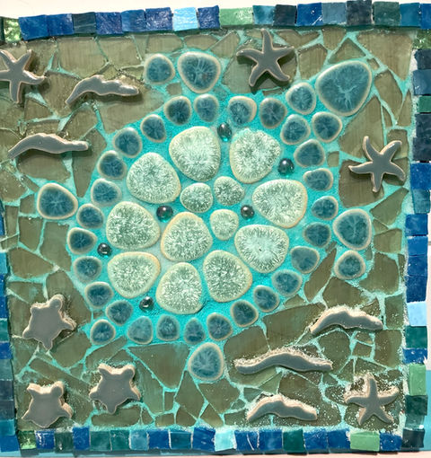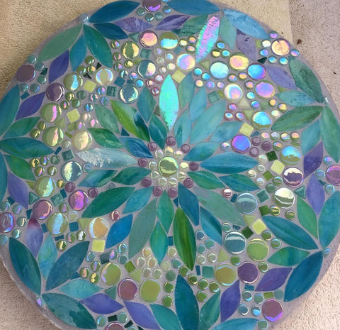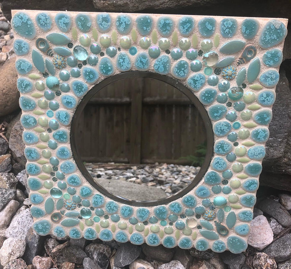 Her art focuses on pieces to enhance sacred spaces including mosaic mirrors, mandalas, nature scenes, stepping stones, garden art, and unique jewelry.